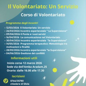 Partecipa al nostro corso di volontariato. Trovi tutti i dettagli nella locandina.